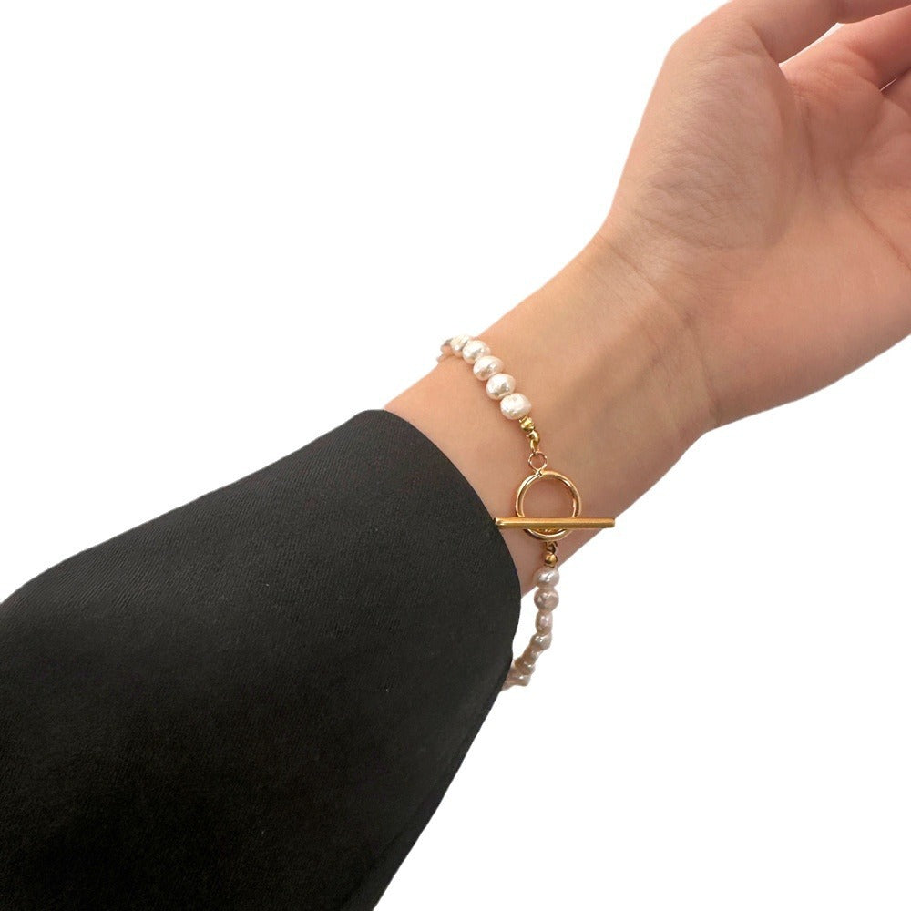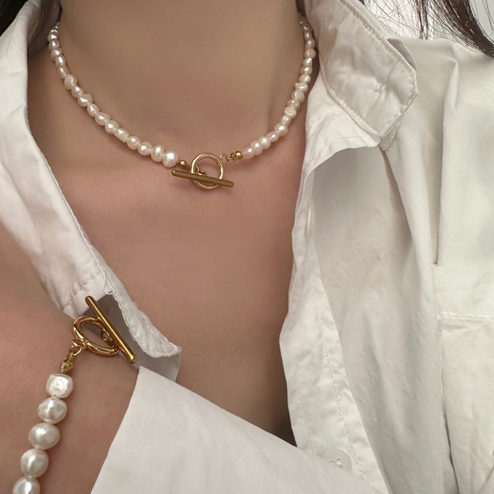Natural Shaped Freshwater Pearl OT Buckle Stainless Steel Necklace Bracelet