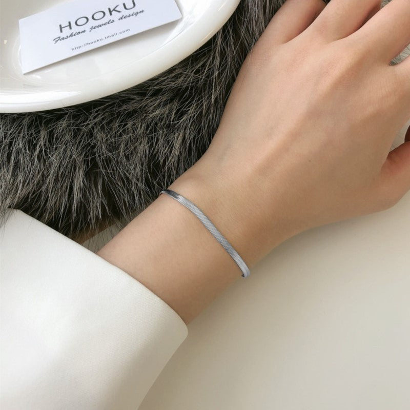 S925 Sterling Silver Blade Flat Snake Bone Necklace For Women